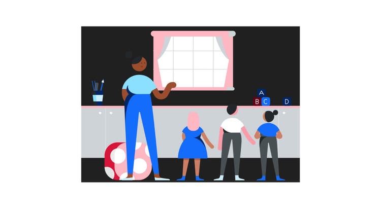 Illustration of teacher with students